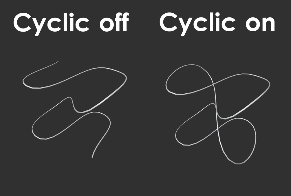 "Cyclic" if the checked will close the curve to a close loop(will make the curve cycle).